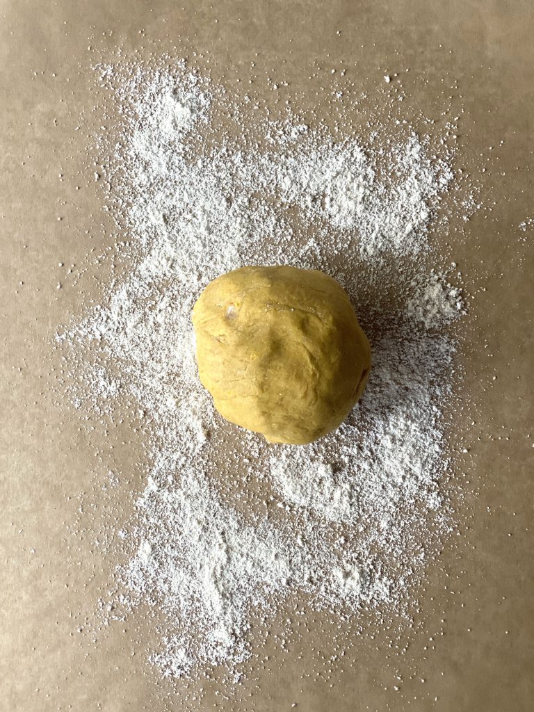On a floured surface, roll out the dough to about 1/4 inch thickness.